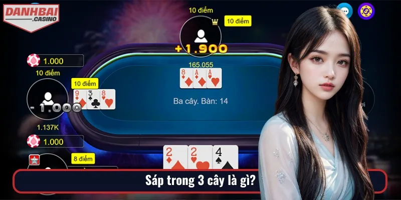Bộ sáp trong bài 3 cây bao gồm ba lá bài có cùng số, tạo thành một bộ rất mạnh trong trò chơi. Các bộ sáp này được xếp theo thứ tự giá trị từ cao đến thấp dựa trên số của lá bài. Cụ thể, sáp Át (AAA) được coi là bộ sáp mạnh nhất, tiếp theo lần lượt là sáp K (KKK), Q (QQQ), JJJ, rồi giảm dần đến sáp 2 (222) là bộ thấp nhất.